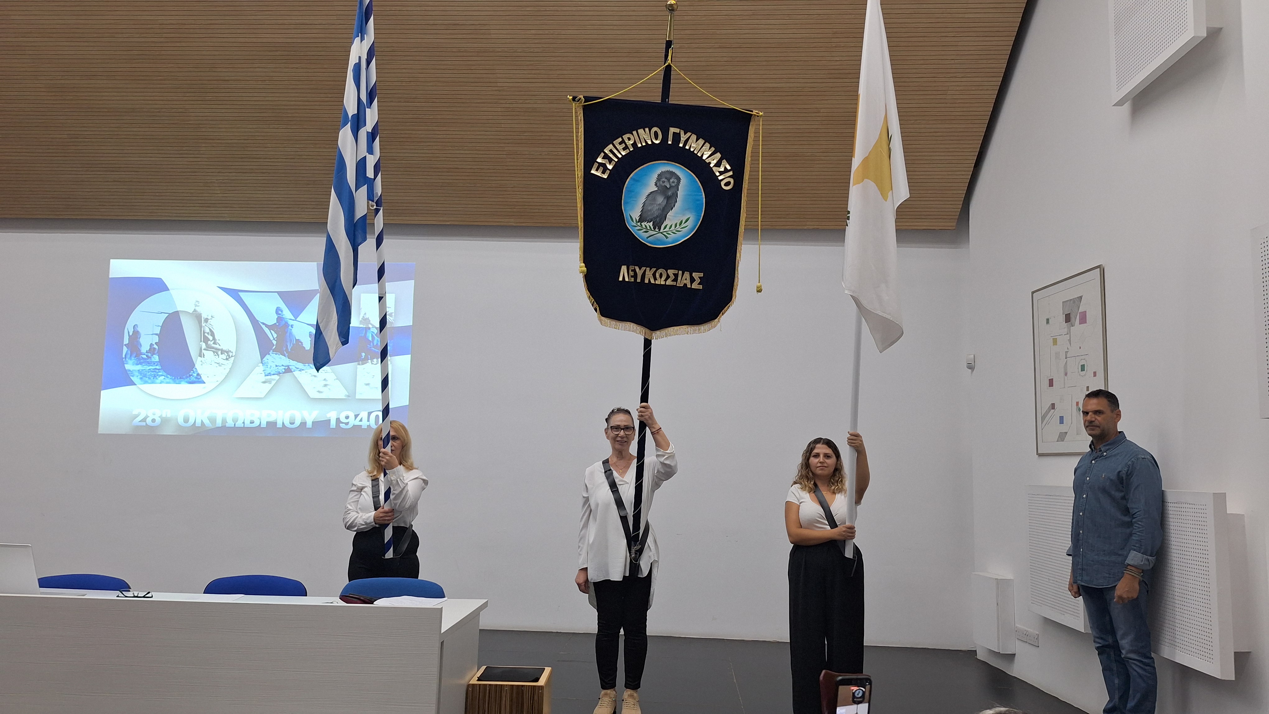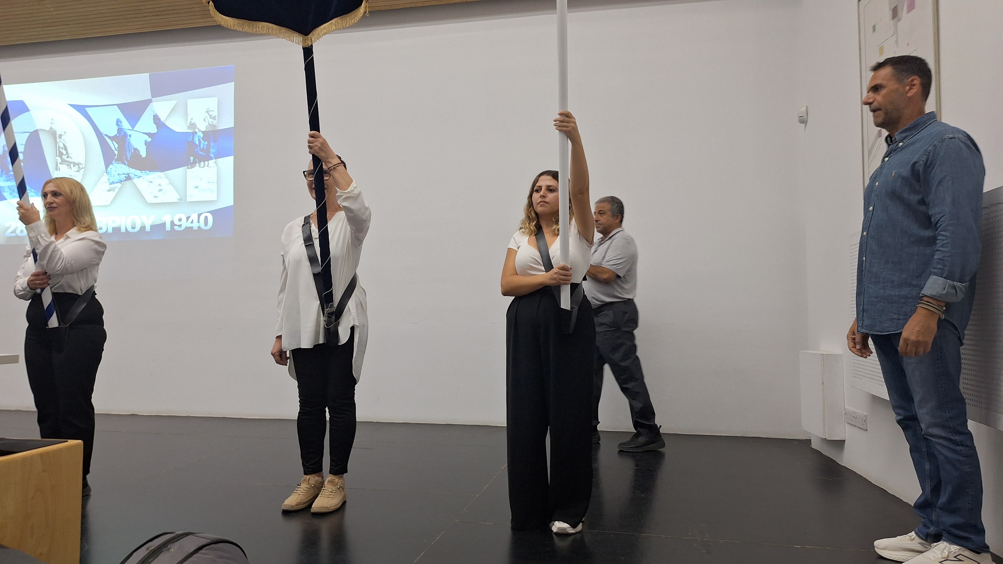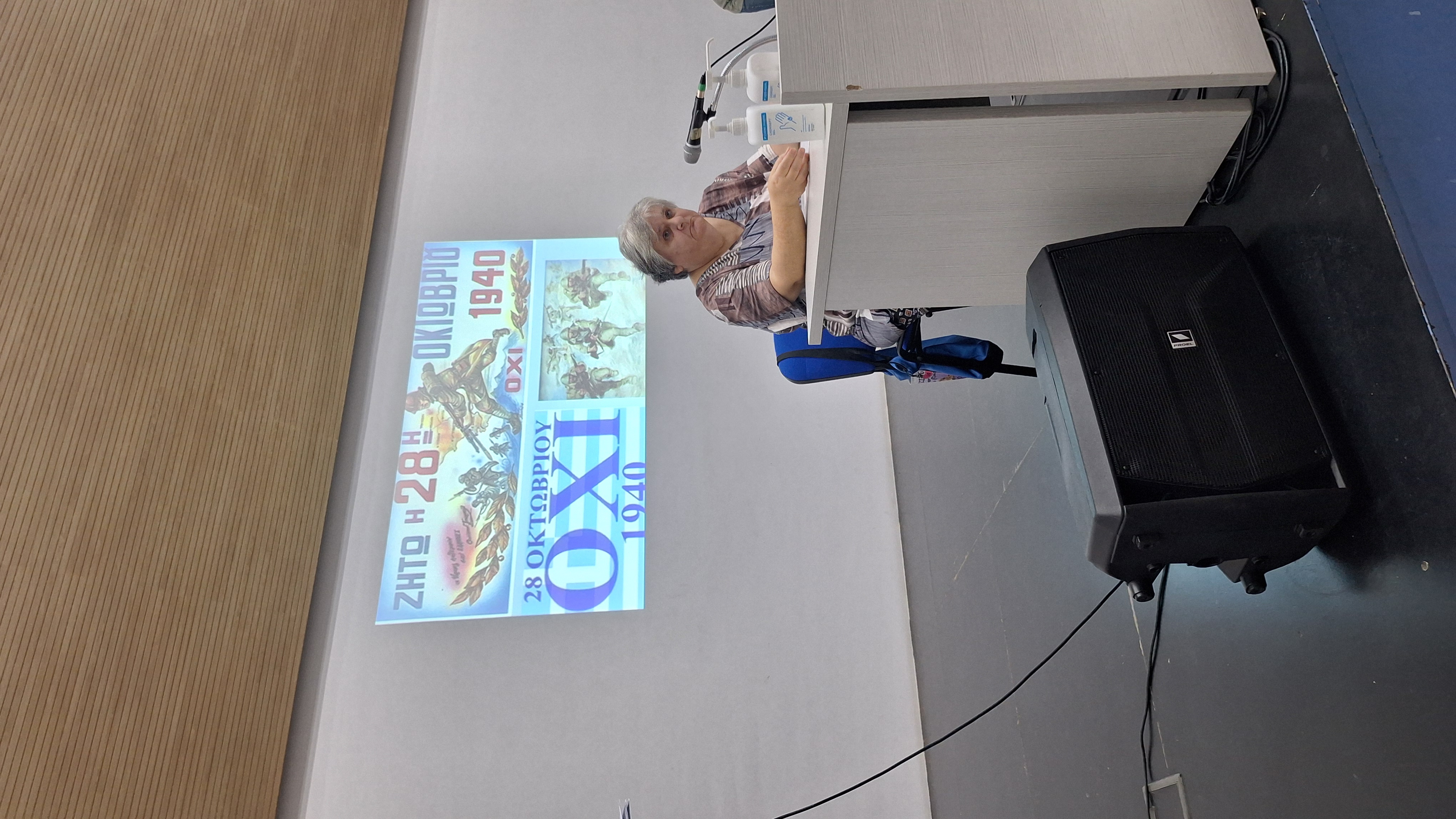 Τη Δευτέρα, 27/10/2025, το σχολείο μας τίμησε τη Γιορτή της Σημαίας και την Εθνική Επέτειο της 28ης Οκτωβρίου 1940. Στο πρώτο μέρος της εκδήλωσης έγινε η Ανακήρυξη των Σημαιοφόρων και Παραστατών του σχολείου μας, η παράδοση του λαβάρου και των σημαιών και η περιφορά του Αγήματος. Στη συνέχεια, ακολούθησε παρουσίαση - αφιέρωμα στην Εθνική Επέτειο από τους μαθητές και μαθήτριές μας η οποία περιελάμβανε πεζά και ποιητικά κείμενα, καθώς και σύντομες επετειακές ταινίες. Την εκδήλωση διάνθισαν τραγούδια από τη χορωδία και ορχήστρα του σχολείου μας.